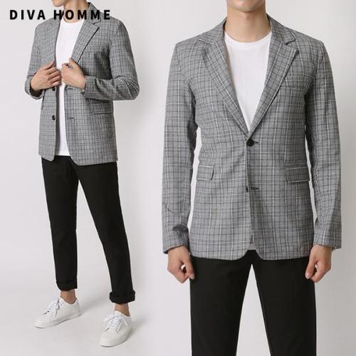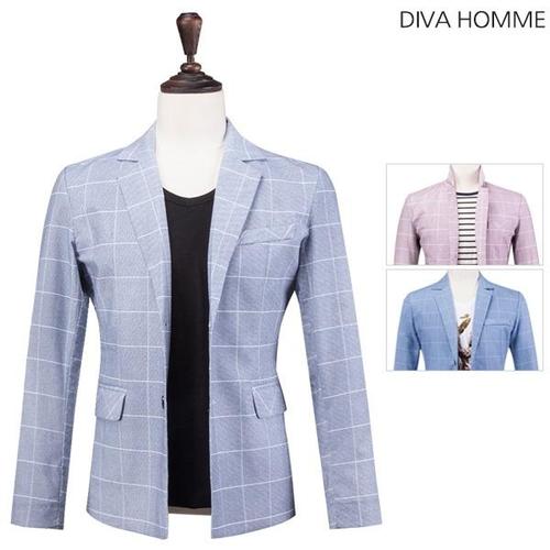 [디바옴므]린넨 트윌 체크 자켓