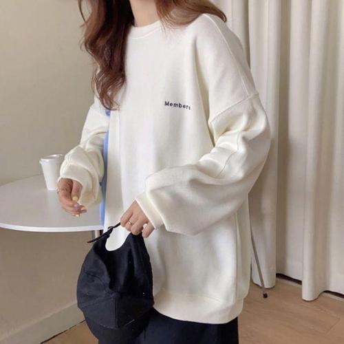 정돈된 로고프린트커플용 와이드핏 맨투맨티셔츠 스타일 이지웨어