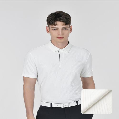 헤지스 골프 화이트 남성 사선 자카드 반팔 카라티 (HUTS5B315OW)
