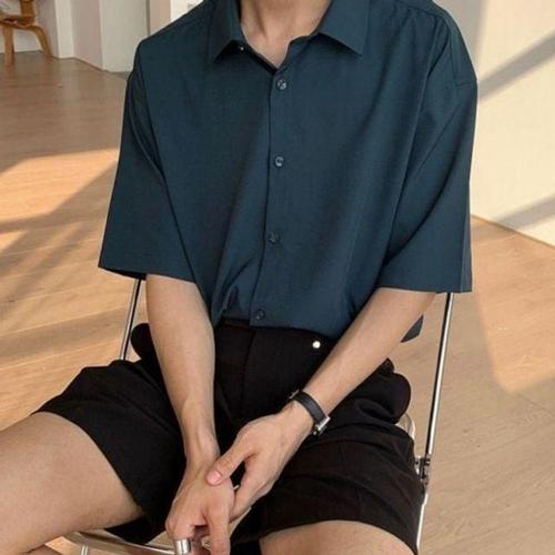남성 반팔 와이셔츠 구김없는 스판 여름 남자 반팔셔츠 무지 솔리드 흰색 정장 셔츠 빅사이즈 95~130