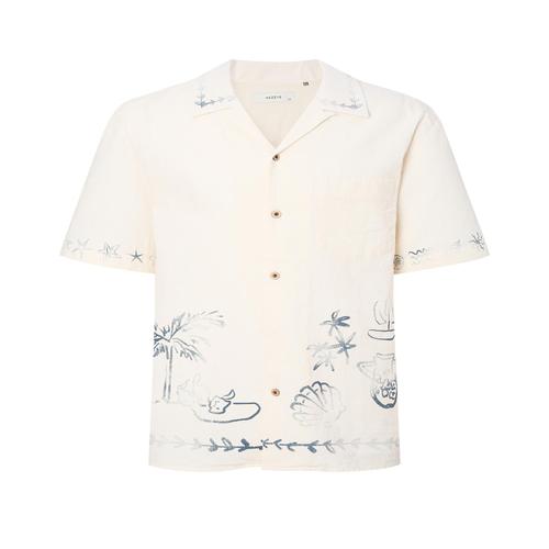 헤지스 남성 화이트 건지 프린트 반팔 셔츠 (HZSH5B702OW)