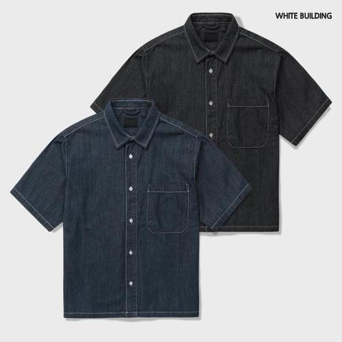 [화이트빌딩]화이트빌딩 남자청남방 남자남방 오버핏 데님반팔셔