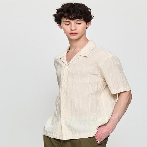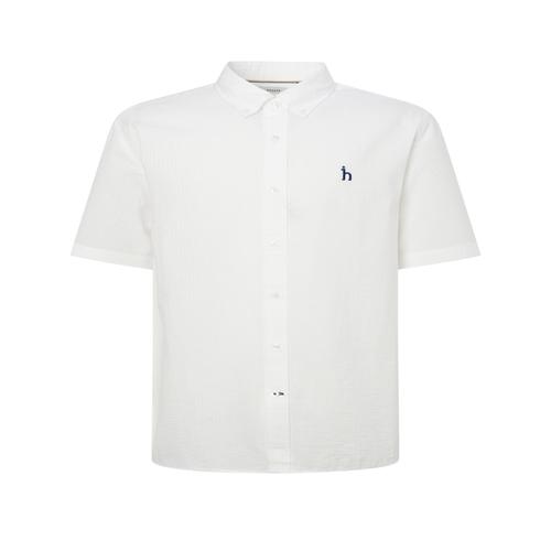 헤지스 남성 [시즌오프]화이트 가먼트다잉 서커 반팔 셔츠 (HZSH5B503WT)