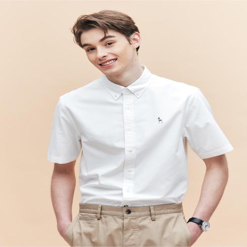 헤지스 남성 화이트 옥스포드 반팔 셔츠 (HZSH5B504WT)