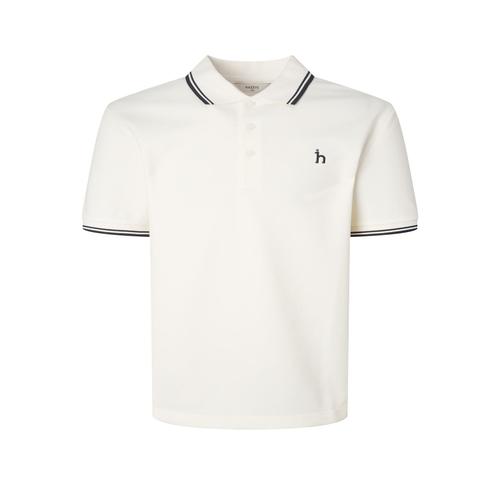 헤지스 남성 화이트 라인배색 면혼방 반팔카라티셔츠 (WHTS5B437OW)