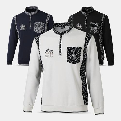 보스케 남성 봄 여름 골프 웨어 라운드 니트 긴팔 티셔츠