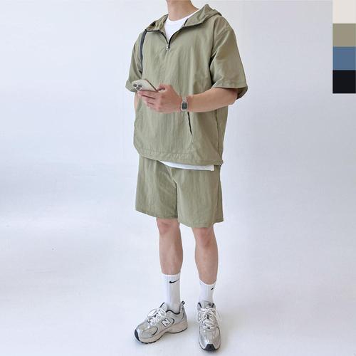 [에이치플러스몰]남성 여름 후드 반팔 아노락세트 1P 트레이닝복 셋업