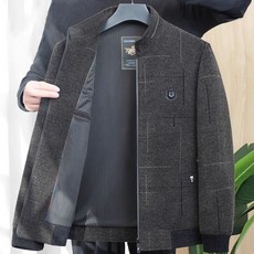 봄 가을 중년 남성 자켓 클래식 체크 패턴 칼라 양털 혼합 소재 자켓 JS