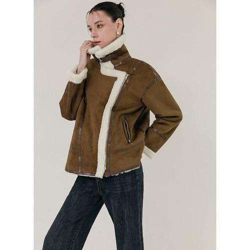 [디바옴므]하이넥 버튼 양털 무스탕 자켓
