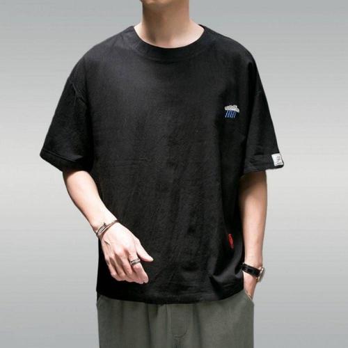 남성용 여름용 린넨 라운드넥 반팔 티셔츠 오버핏 셔츠 WFLMD4G