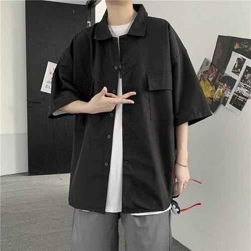 남성 여름 데일리 오버핏 무지 심플 반팔 남방 셔츠 (WFHTQHE)