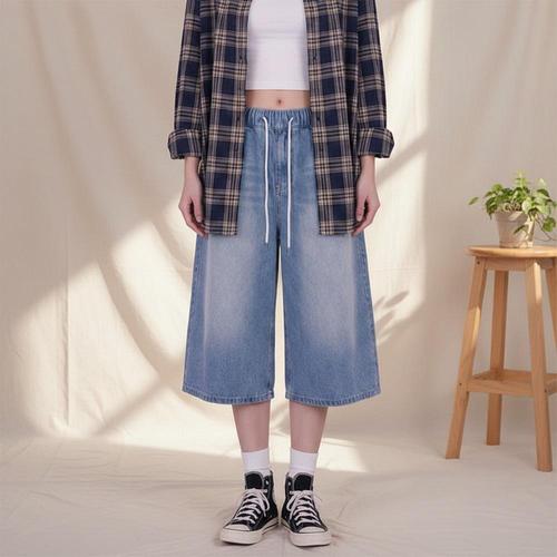 [옷자락] 남녀용 봄여름 샌드워싱 밴딩 버뮤다 데님팬츠