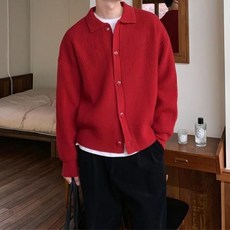 PETITBATH 남성 심플 니트 오버핏 카디건 버튼업 셔츠카라 스웨터 데일리 코디250807SYWZS3810
