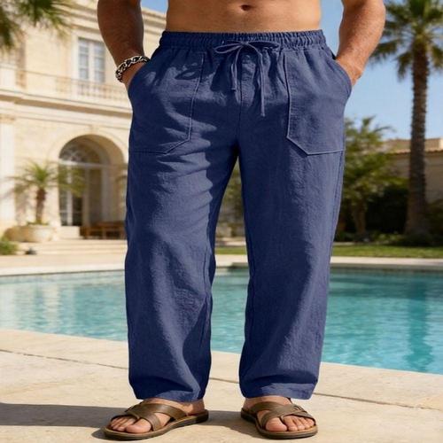 남자바지 린넨 슬랙스 허리밴딩 편한 일자바지 와이드핏 4색 (HSJ-WFK28MO)