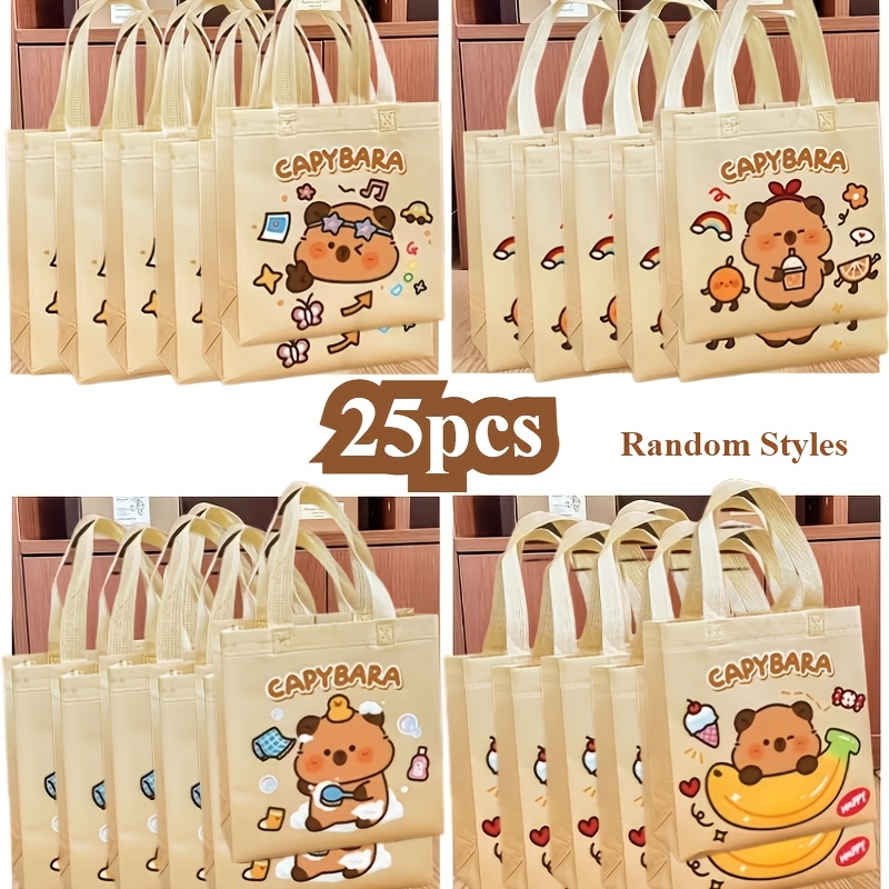 TEMU 그녀/남자를 위한 선물 25개 중 15개 카피바라 테마 토트백, 파티 및 생일 포장에 완벽한 귀여운 부직포 선물 가방