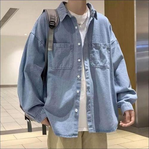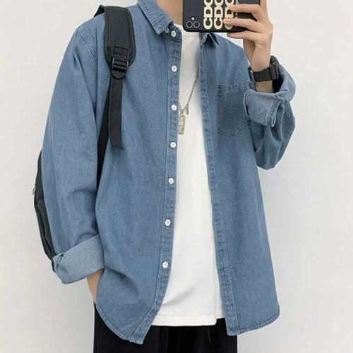 남성 데님 셔츠 캐주얼 긴팔 청남방 WFKIDPX