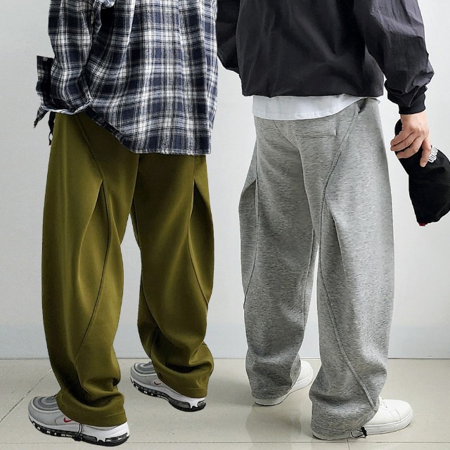 리얼타임 특기모 사이드핀턱 플랩포켓 커브드팬츠/ 옆트임 기모 와이드 벌룬 트레이닝 팬츠 남자통바지 통큰 통넓은 스? 스웨트 겨울 [4c]