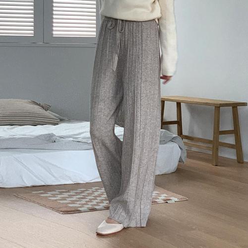 [샵앤][샵앤] 여성 허리밴드 통 니트 플리츠 팬츠 21DS-WPT-4909-차콜