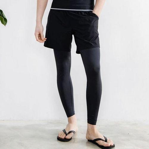 [에이치플러스몰]필라테스바지 레깅스 반바지 2in1 남성