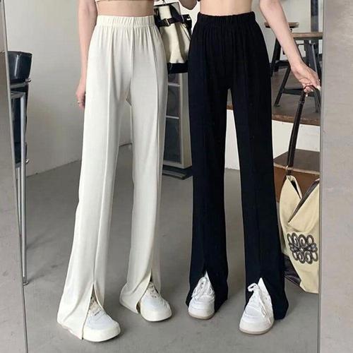 하이웨스트 허리밴딩 팬츠 밑단 트임 팬츠 세미부츠컷 봄부터 WFK0D5K