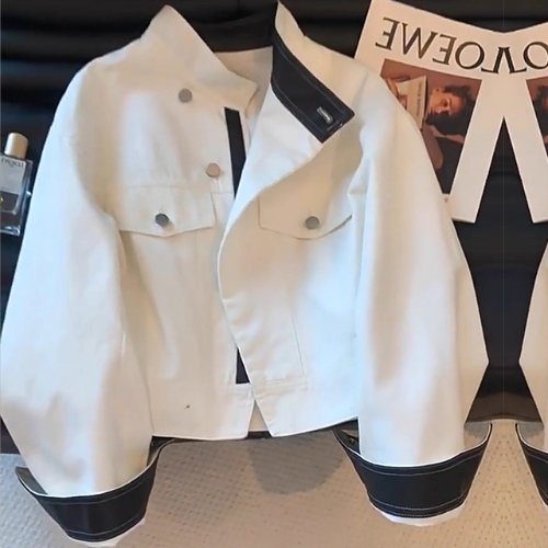 [블랙퀸] 배색소매 화이트 데님 카고자켓 blk004539