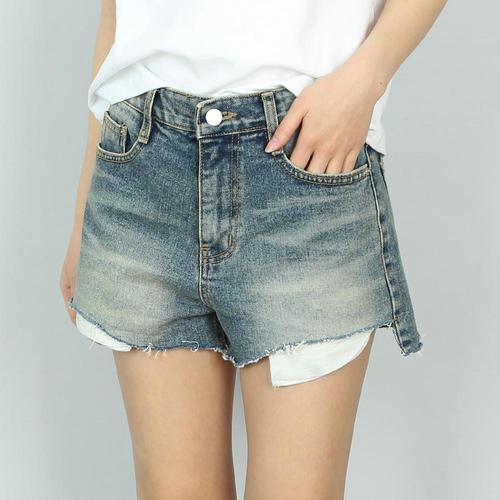 [파라노말샵]데님 난스판 워싱 포켓 언발 숏 팬츠 3부 반바지 (파