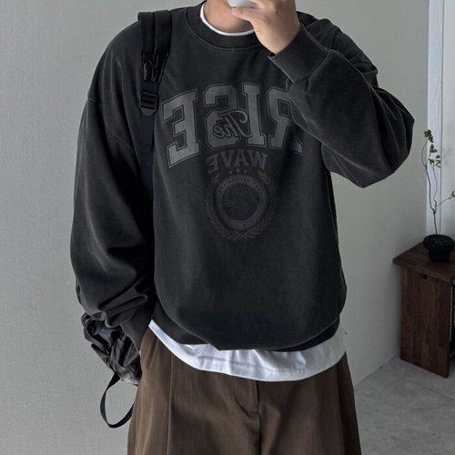 제로스샵 / 남친룩/트렌디 워시드 라이즈 피그먼트 기모 오버핏 맨투맨