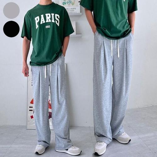 남녀공용 트레이닝 바지 원턱 배색 와이드 팬츠