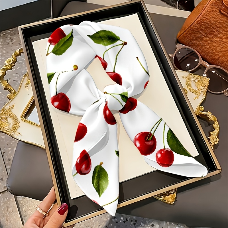 TEMU 1개 경량 부드러운 산뜻한 스타일 빨간 체리와 초록 잎 패턴 사각 스카프 여성용 아웃도어 다기능 헤드웨어, 데일리 출퇴근, 쇼핑, 주말 레저, 여행에 적합, 목 라이트 타이 스타일, 멀티 웨이 매칭, 부드러운 촉감
