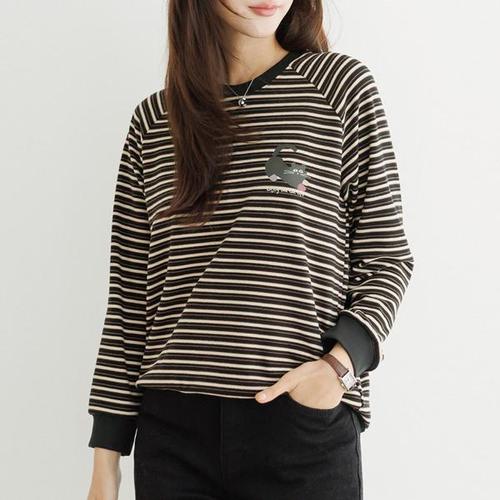 (55~88)2종세트 냥이스트라이프셔츠 롱셔츠 여성봄블라우스 롱티 박스티 여성긴팔셔츠
