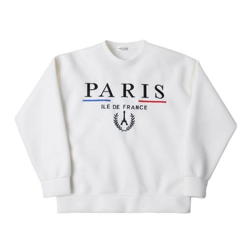 엠클로 남자 남성 오버핏 네오프렌 파리 레터링 자수 맨투맨 티셔츠