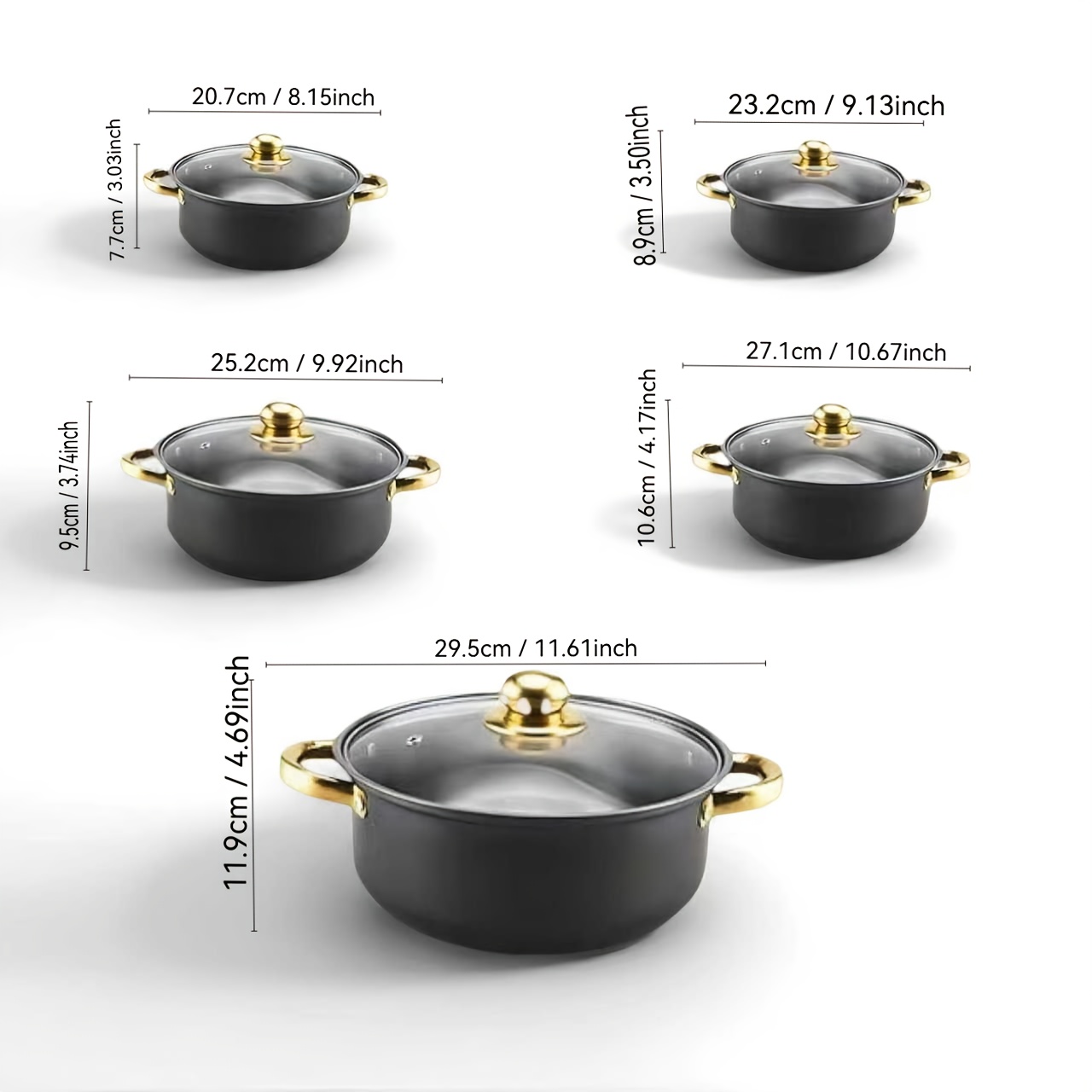 TEMU 5개의 냄비와 5개의 뚜껑, 스테인리스 스틸 냄비 세트 그레이 세트, 수프용 딥 수프 냄비, 핫팟, 국수, 파스타, 해산물 수프, 주방에서 사용 가능, 야외 피크닉/졸업 시즌/집들이 선물에 완벽
