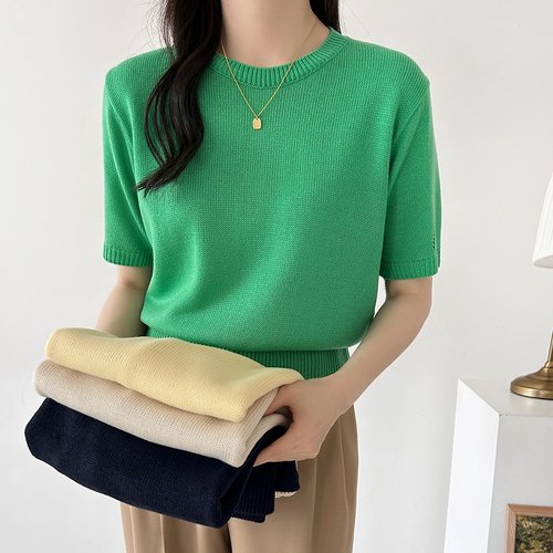 국산 여성 라운드넥 베이직 반팔 니트 티셔츠 21DS-WKN-4159-네이비