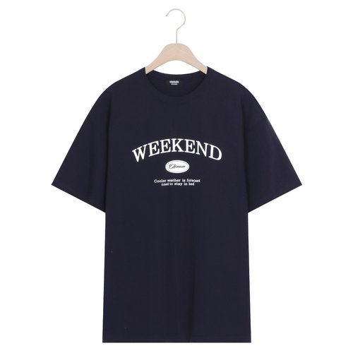 여성 기본 프린팅 루즈핏 네이비 반팔 티셔츠 WON-WSH-WFI0BEK