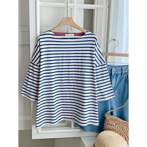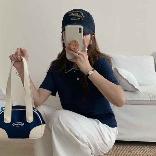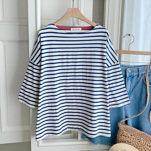 국산 여성 라운드 넥 해링턴 캐주얼 반팔 티셔츠 ODA-WSH-20294-네이비