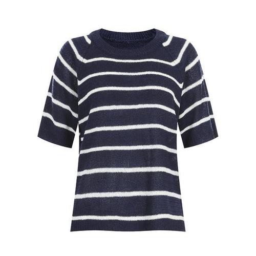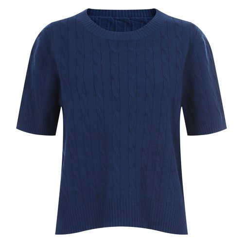 여성 라운드넥 내추럴 데일리 반팔 케이블 니트 티셔츠 NARU-WKN-20350-네이비