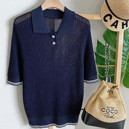 [샵앤][샵앤] 여성 카라넥 골지 베이직 반팔 니트티 DGB-WKN-4554-네이비