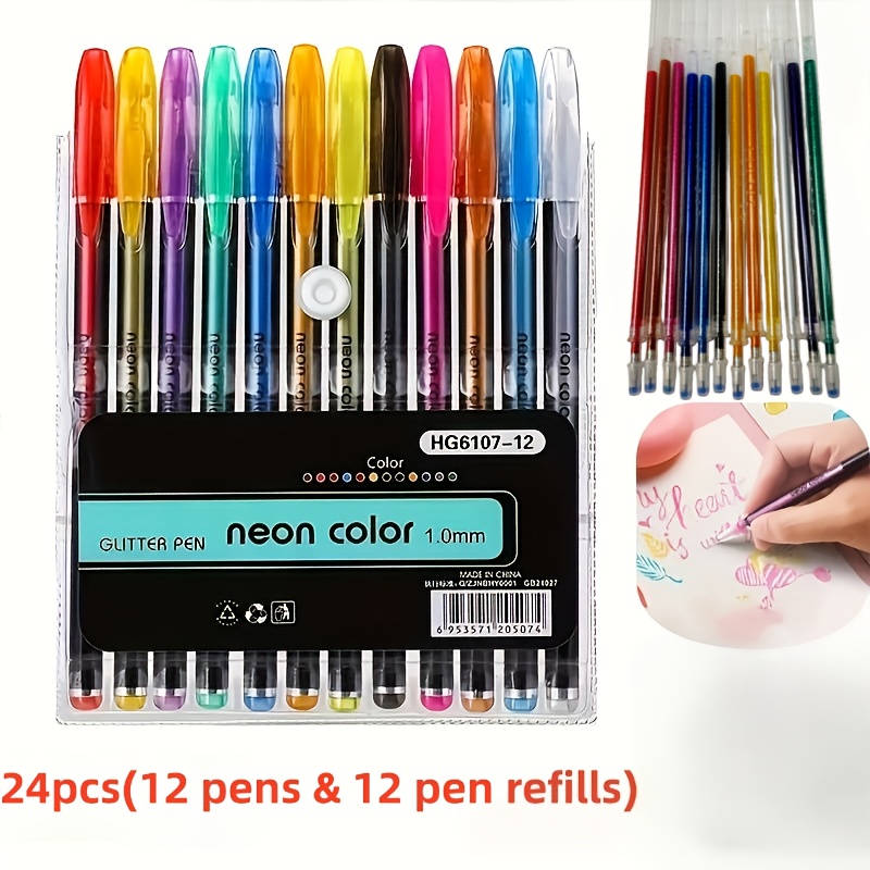 TEMU 24개 세트(펜 12개 + 리필 12개) 메탈릭 글리터 컬러펜, 미세한 팁으로 드로잉과 낙서에 적합, DIY 앨범 제작에 이상적, 생일 선물로 완벽