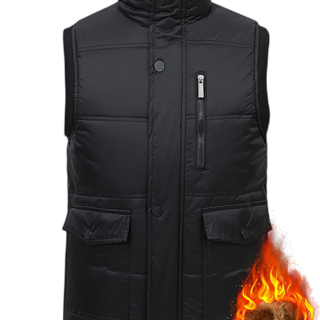 TEMU 남성용 경량 보온 조끼 - 내장 포켓, 스탠드 칼라, 루즈핏, 폴리에스터 충전재, 가을/겨울 캐주얼 스타일, 겨울 조끼, 두꺼운 남성용 조끼|민소매