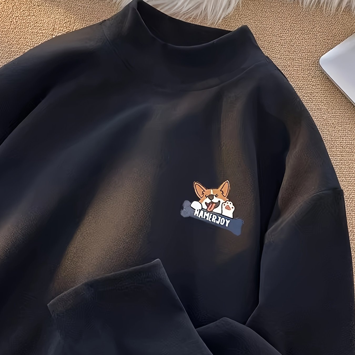 TEMU 편안한 코지, 소년용 코지 플리스 안감 하프 터틀넥 스웨트셔츠 - "코기", 긴팔, 겨울용 따뜻한 안감, 캐주얼 스타일