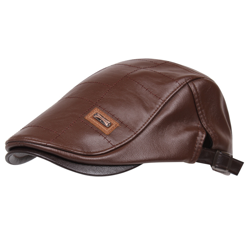 TEMU 남성용 조절 가능한 밀리터리 스타일 캐디트 모자 - 소프트 PU 가죽 플랫 탑 캡, 골드 톤 버클 클로저, 포멀 & 캐주얼 이벤트를 위한 구조적인 핏