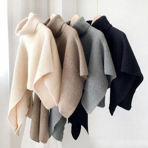 [엄지척]터틀넥 언밸런스 니트 숄 케이프 ELS105 라운드넥니트_19804322_667501