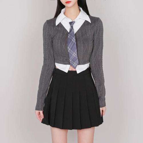 [오너클랜]인기상품 넥타이증정 하이틴 스쿨룩 셔츠 브이넥 상의 세트 [WDCC04A_250917]