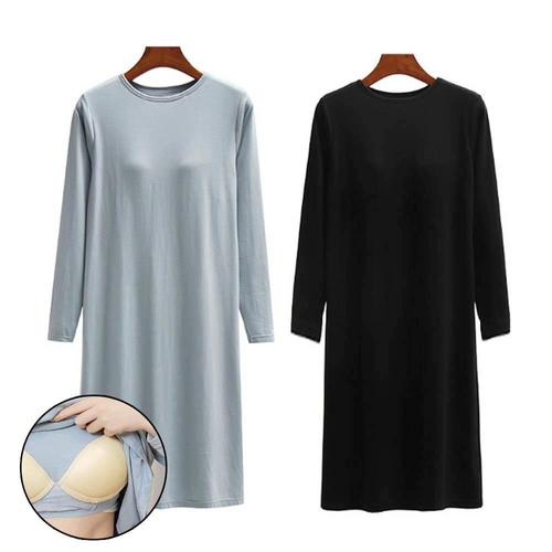 [에이치플러스몰]스타일 긴팔 데일리 라운드넥 원피스 노브라