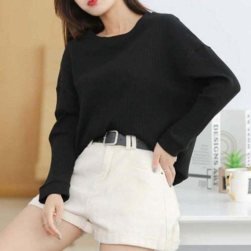 [셀럽하우스]오버핏 EZYL6931 여성 노브라 라운드넥 골지 긴팔 티셔츠