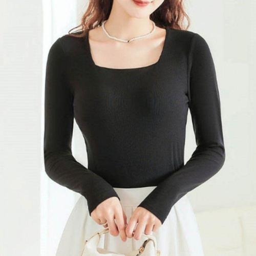 [하프클럽/]날씬해보이는 긴팔 노브라 골지 3컬러 기본티셔츠 스퀘어넥 슬
