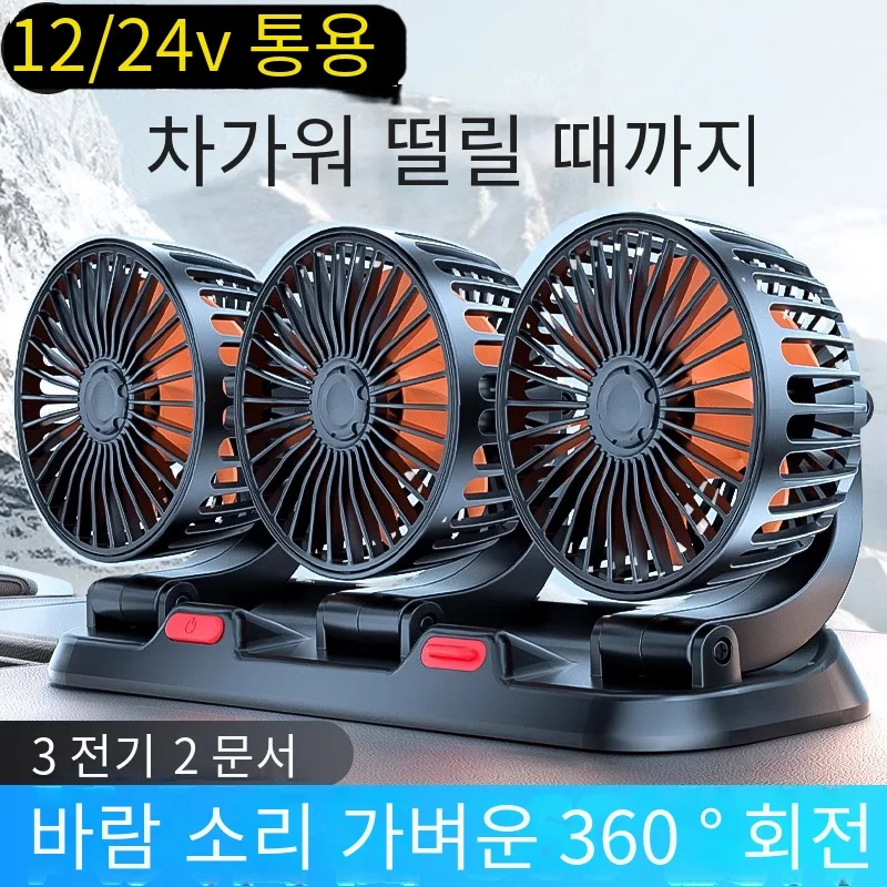 자동차 선풍기 조정 가능한 3 헤드 에어 선풍기, 자동차 전기 선풍기, USB, 12V, 24V, 선풍기 2 단, 가정 책상 사무실 및 차량용 사일런트 선풍기, 360 °