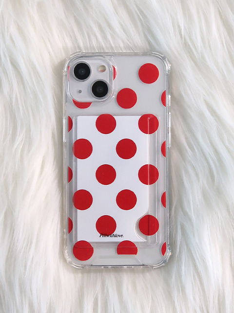 [필위드러브] 카드수납 젤리 폰케이스 - Big dot(red)
