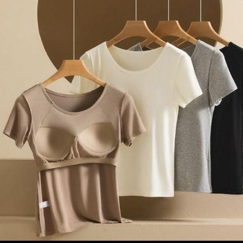 노브라티 브라패드 티 하프슬리브 베이직 면소재 신축성반소매 WFJIWOR