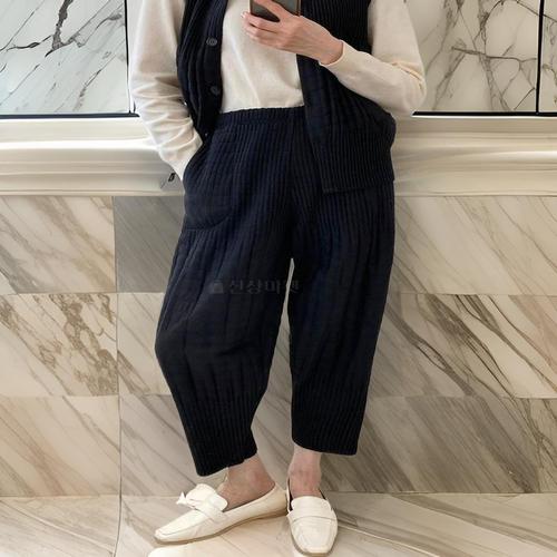 [옷자락]여성 와이드 항아리 밴딩 배기핏 포켓 누비 바지